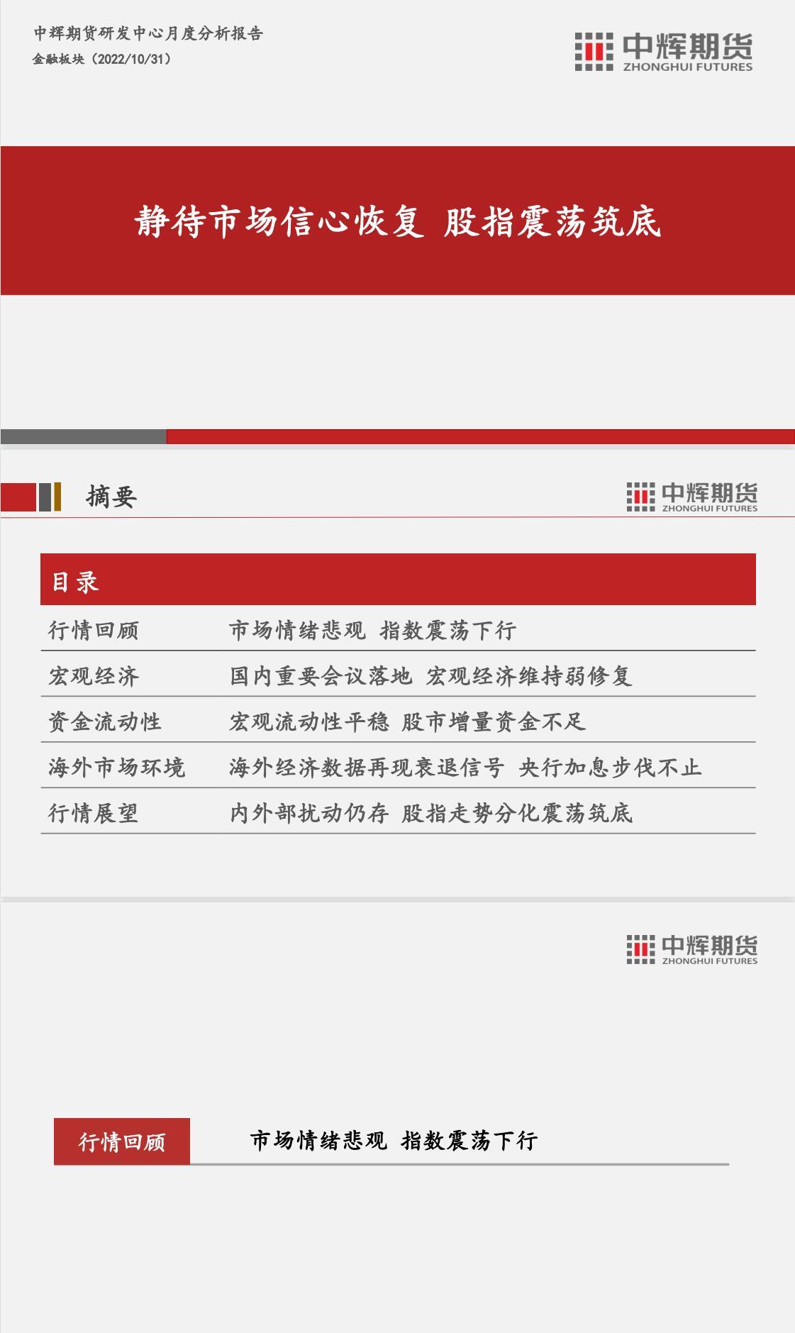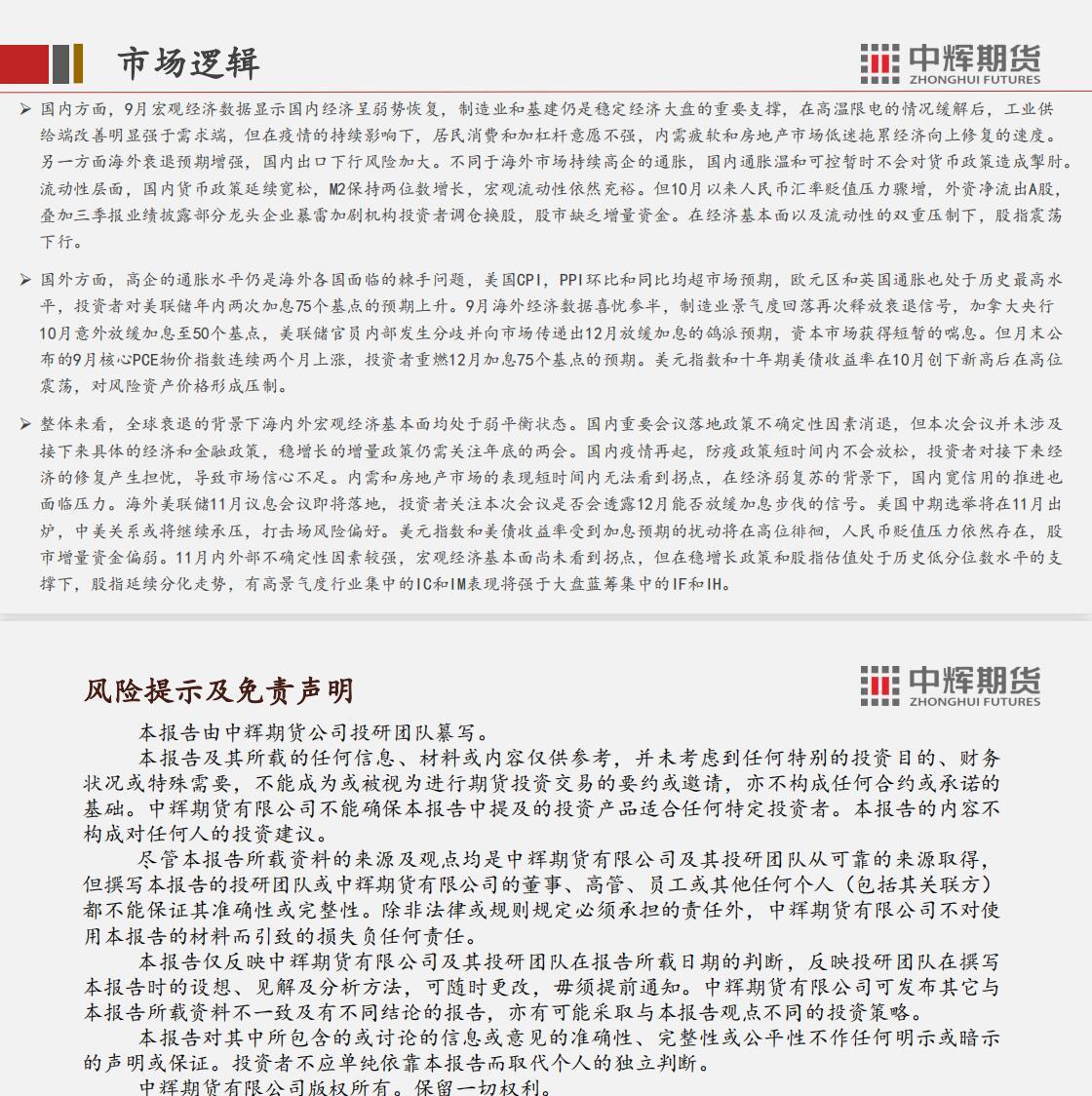 标题:中辉期货股指期货11月月报:静待市场信心恢复 股指震荡筑底