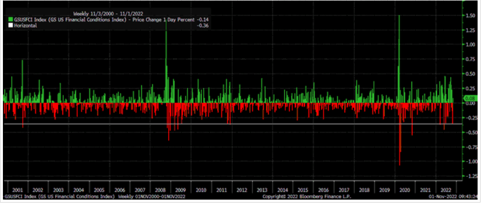 仔细看看,第一篇文章发表于美联储噤声期前的最后时刻,帮助呼应了戴利的压轴鸽派讲话;第二篇文章则发表于上周末,这又是一个怎样的时间点呢:金融市场和利率预期在过去一周被他带出的鸽派节奏带飞了——道指创下了46年来最大单月涨幅、科技股财报凄惨一片的情况下纳指居然还在上涨、高盛编制的美国金融条件指数创下了年内最大单周跌幅之一。