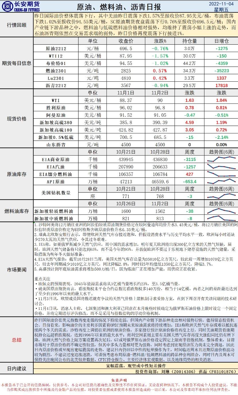 长安期货原油早评:宽幅震荡,建议观望或中性短差操作 Nov 04,2022 11月4日,长安期货发布原油早评,认为原油将宽幅震荡,建议观望或中性短差操作。长安期货公司授权文本由“专注期货开户交易及专业行情分析资讯网站”:【一期货 www.1qh.cn】转发
