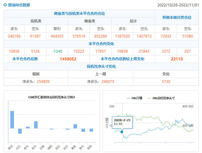 据洲际交易所(ICE)数据显示,11月1日当周,投机者所持布伦特原油净多头头寸增加22214手至227665手合约,创最近20周新高。投机者所持布伦特柴油净多头头寸降至60863手合约,创最近四周新低。