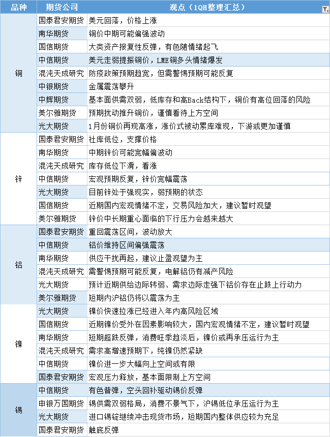标题:期货公司观点汇总一张图:11月7日有色系(铜、锌、铝、镍、锡等)