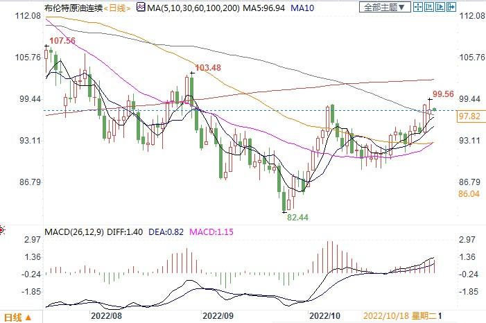 北京时间11月8日11:10,布伦特原油连续 报 97.82美元/桶