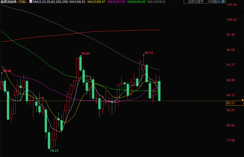 商品收盘情况:布伦特原油期货结算价下跌3%,报每桶93.14美元,美国原油期货下跌3.47%,至85.87美元。美国期金收涨0.4%,结算价报1776.9美元。
