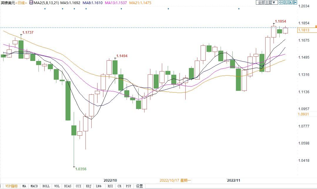 北京时间11月15日15:40,英镑兑美元报1.1816/18