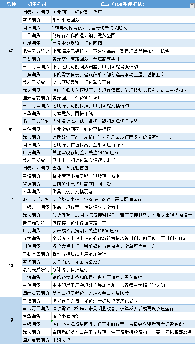 标题:期货公司观点汇总一张图:11月15日有色系(铜、锌、铝、镍、锡等)