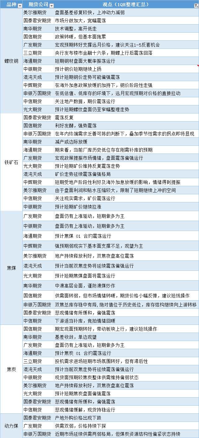 标题:期货公司观点汇总一张图:11月15日黑色系(螺纹钢、焦煤、焦炭、铁矿石、动力煤等)