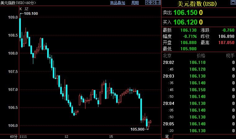 北京时间20:05,现货黄金上浮0.24%至1775.55美元/盎司;COMEX期金主力合约上浮0.11%至1778.8美元/盎司;美元指数下跌0.70%至106.134。