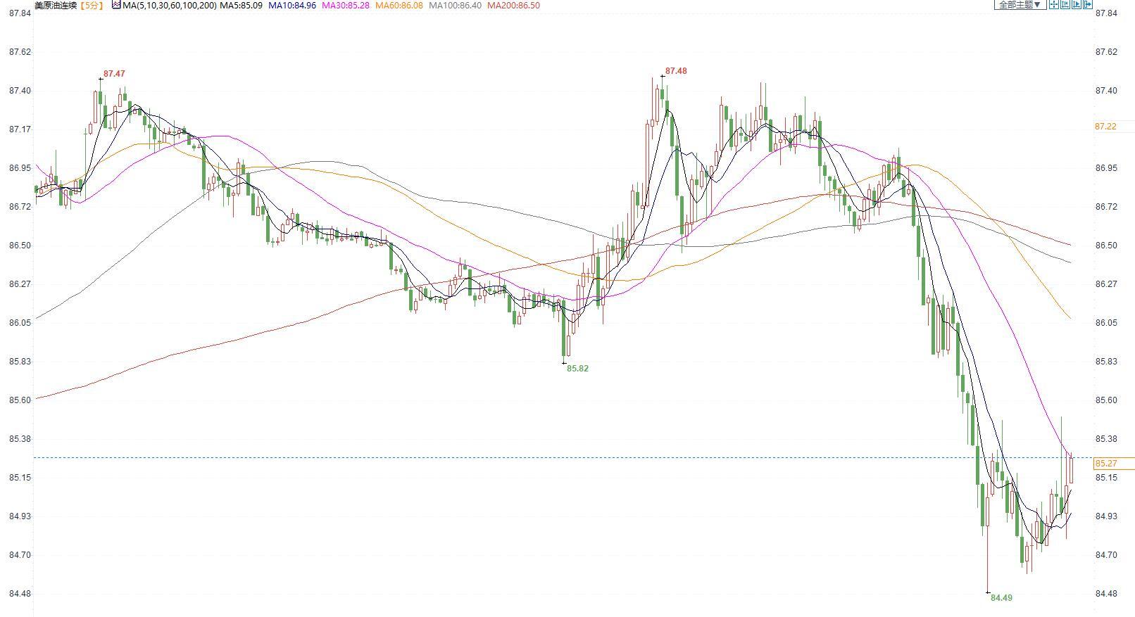 美国原油价格5分钟图显示