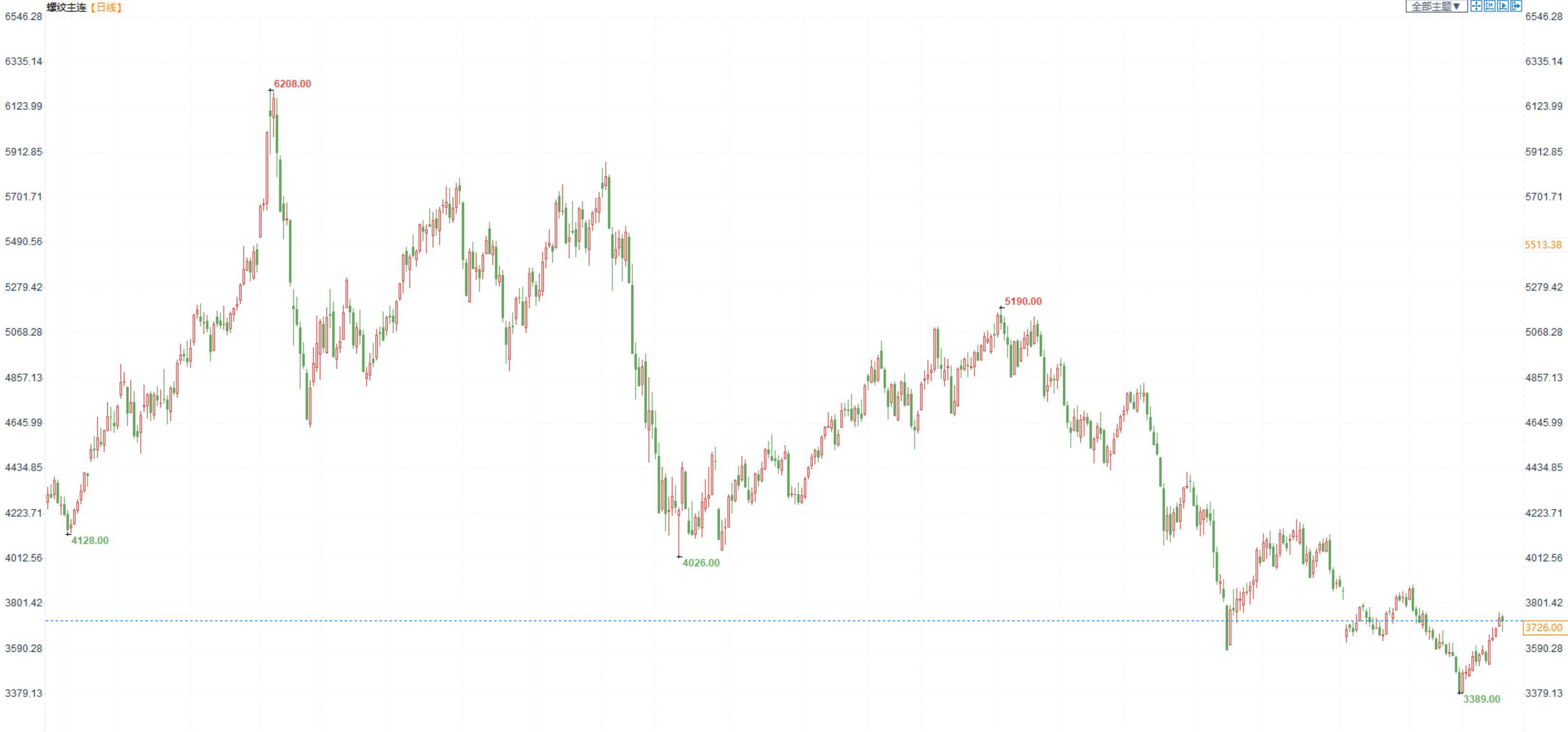 价格:螺纹钢2301合约自夜盘起震荡下行,午后尾盘拉涨,整体呈现宽幅震荡。收盘价3726元/吨,小幅收跌0.08%。上海中天现货价3840元/吨,环比下降20元/吨。