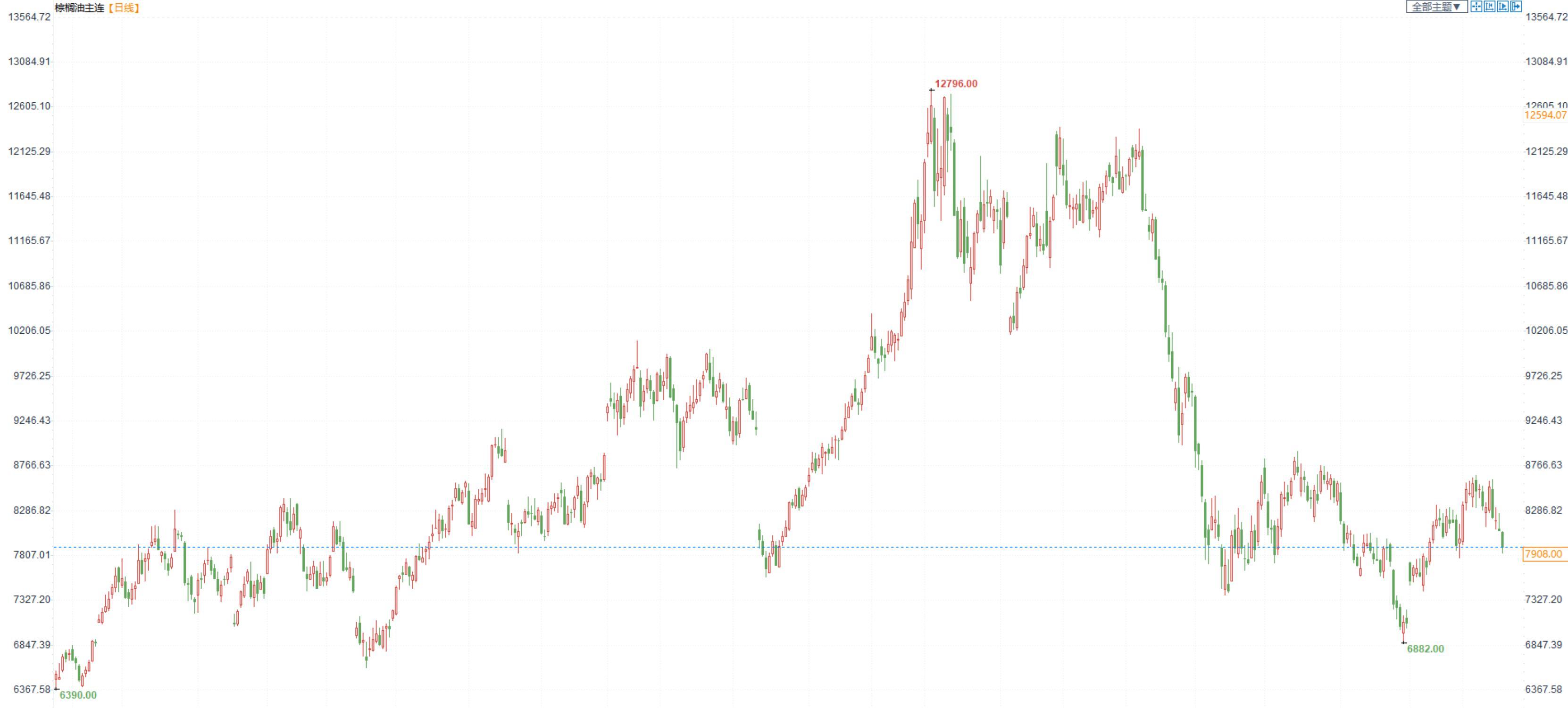 棕榈油2301合约日内跌3.11%,收盘7908元/吨;广州市场棕榈油8080元/吨。