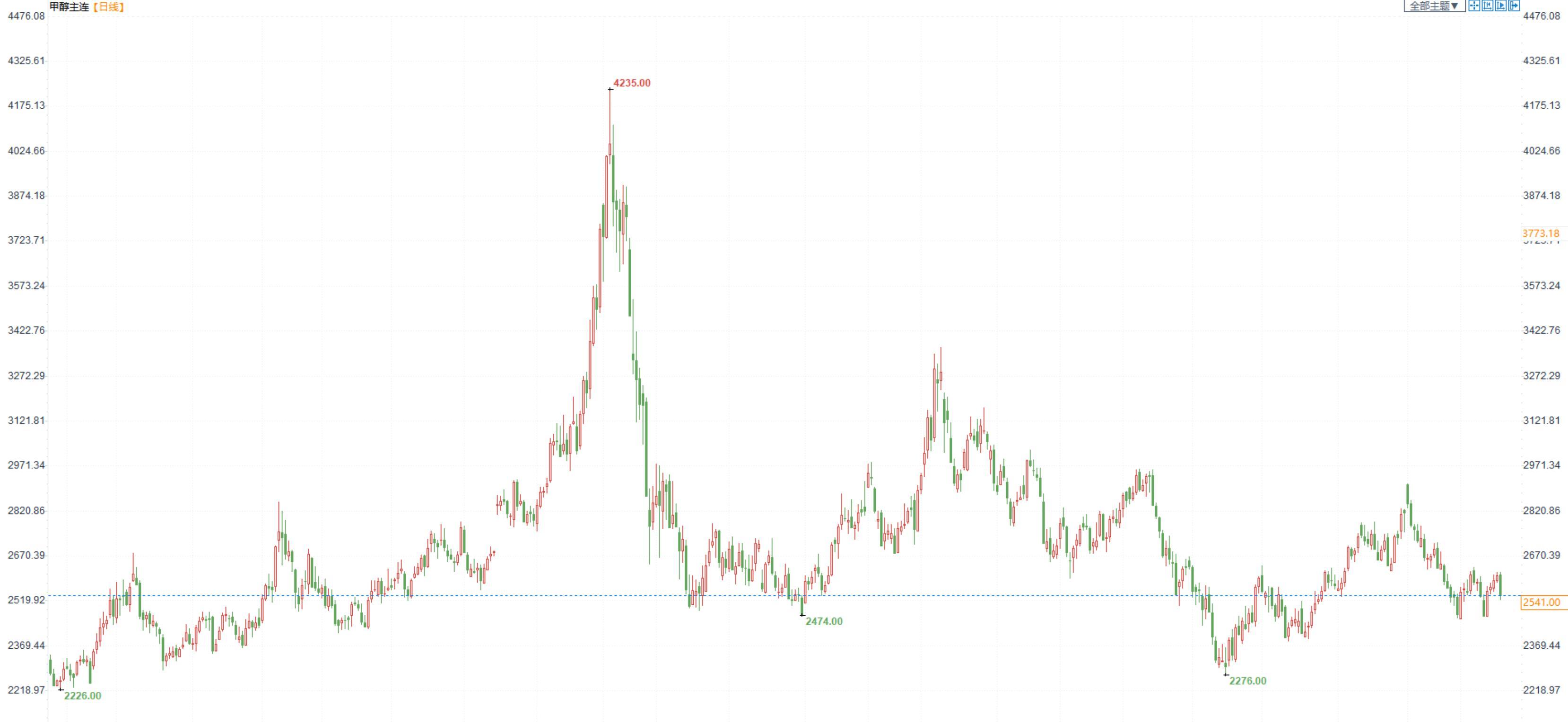 期货市场,甲醇2301合约跌超2%,收盘价2541。