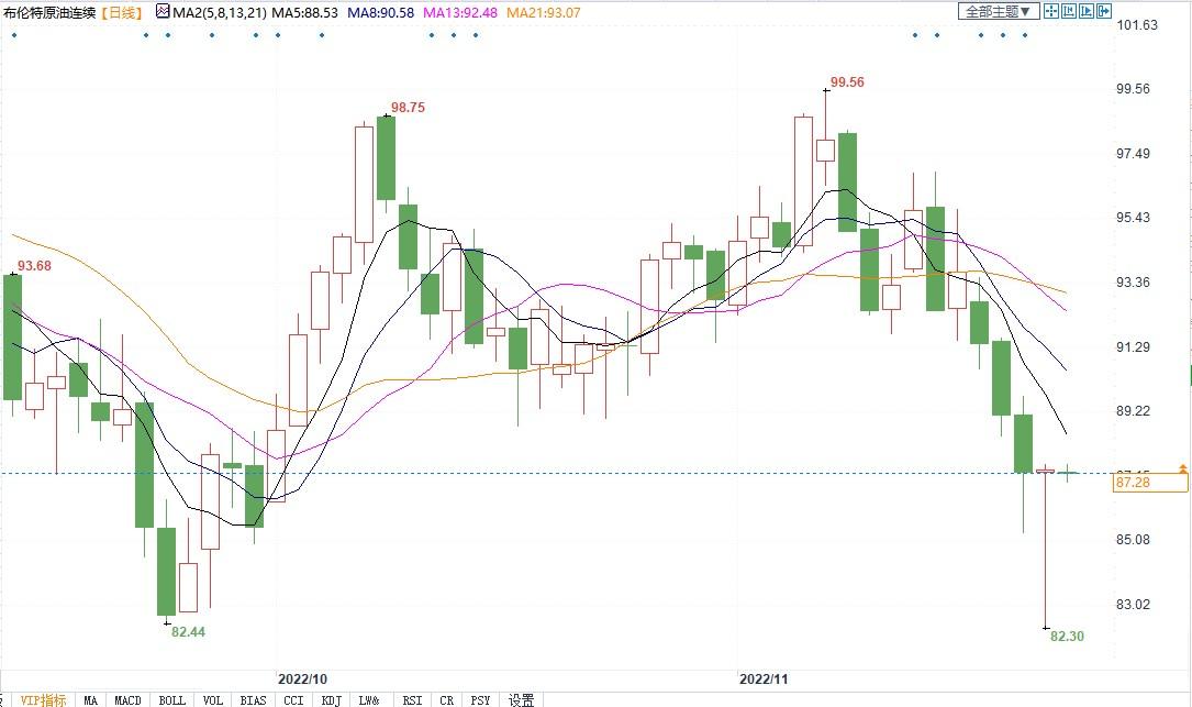 北京时间11月22日13:45,布伦特原油主力合约价格报87.30美元/桶。