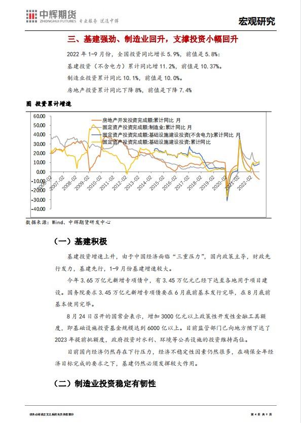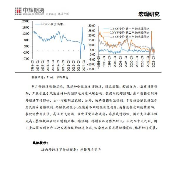 中辉期货9月份宏观数据解读:经济弱势复苏,四季度政策全力以赴发展经济 Oct 25,2022 中辉期货9月份宏观数据解读,称9月份经济弱势复苏,四季度政策全力以赴发展经济。 中辉期货公司授权文本由“专注期货开户交易及专业行情分析资讯网站”:【一期货 www.1qh.cn】转发