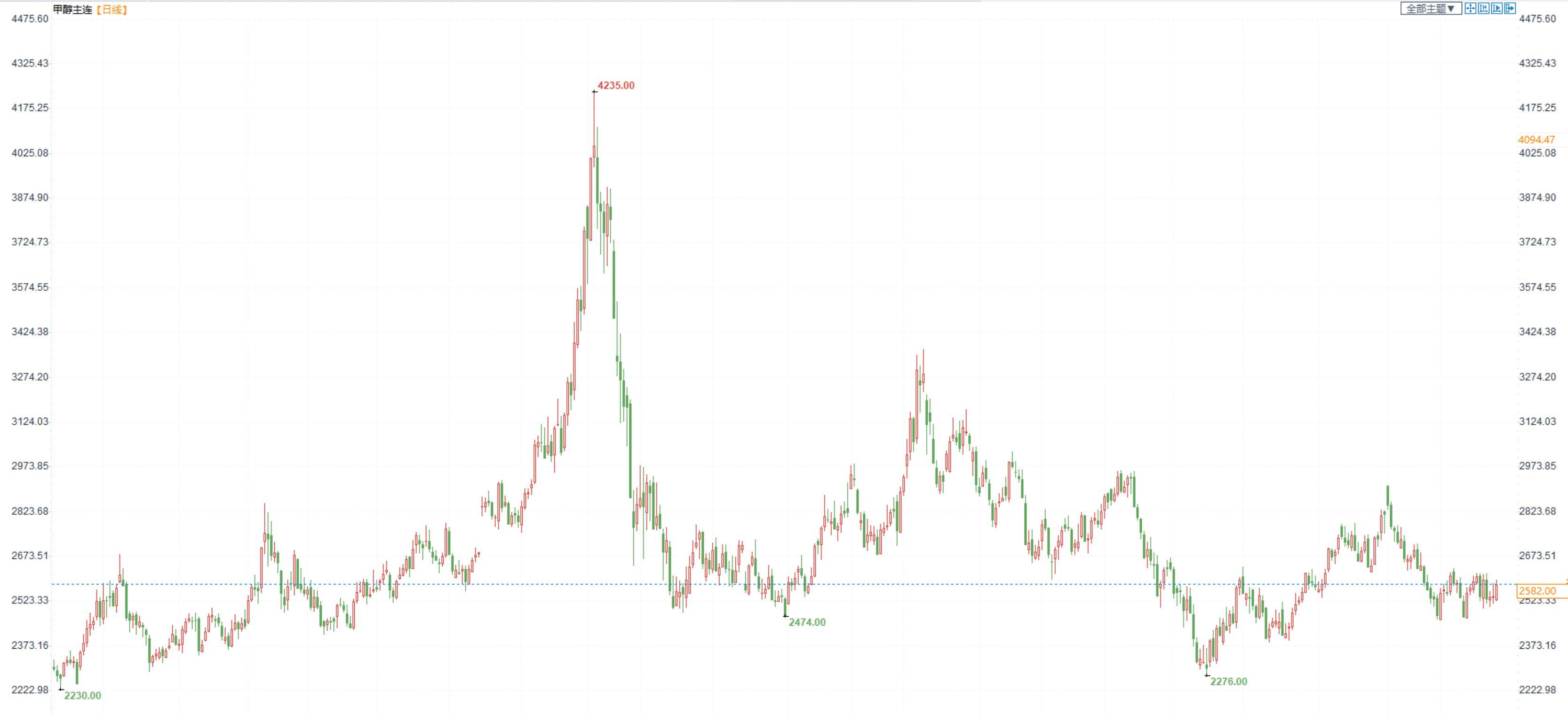 期货市场,甲醇2301合约小幅收涨,收盘价2582。现货端,港口库存较低,目前现货强势于期货。