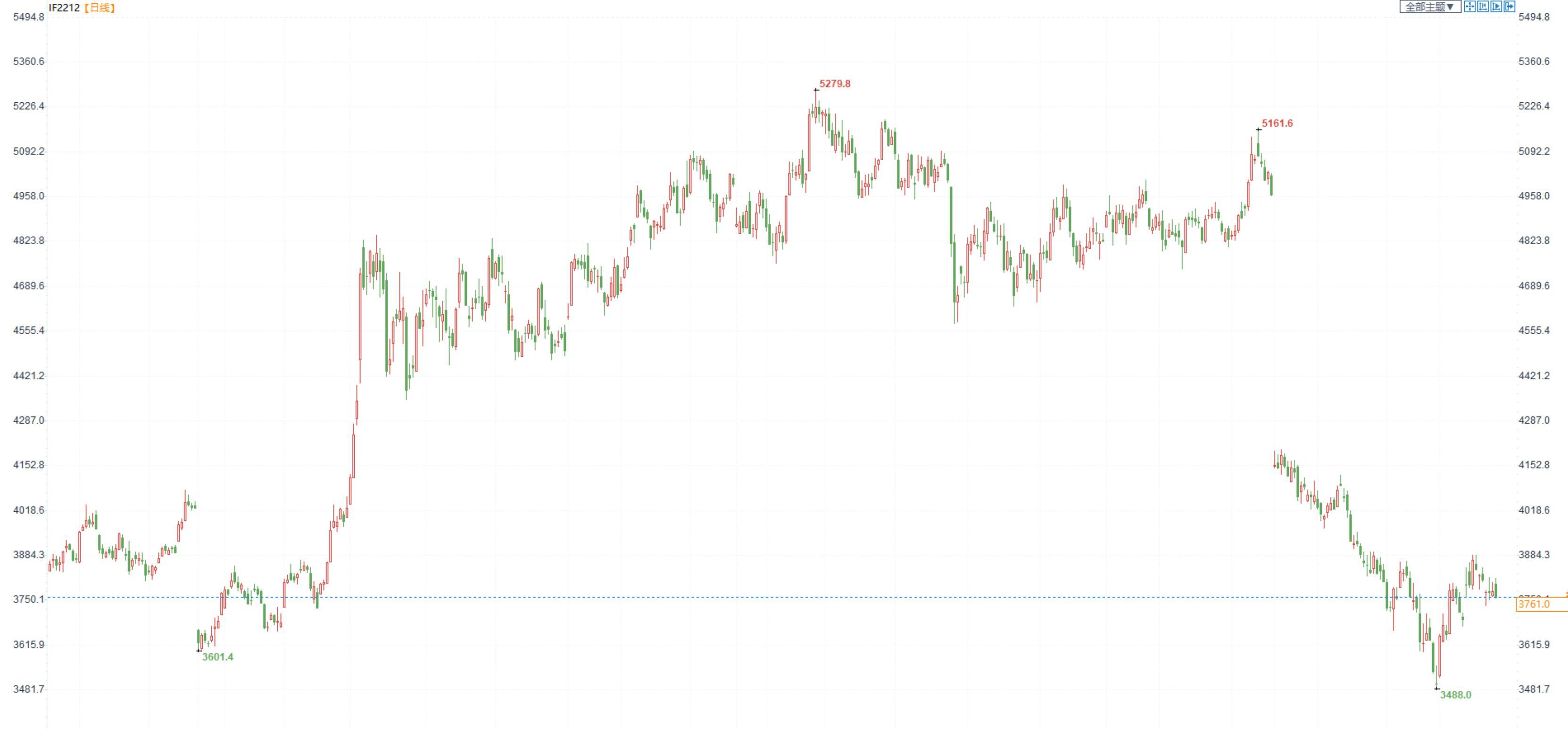 【今日涨跌】四大期指涨跌互现。IH2212收盘价为2519.6,收跌0.80%;IF2212收盘价为3761.0,收跌0.57%;IC2212收盘价为6133.4,收涨0.05%;IM2212收盘价为6559.2,收涨0.19%。