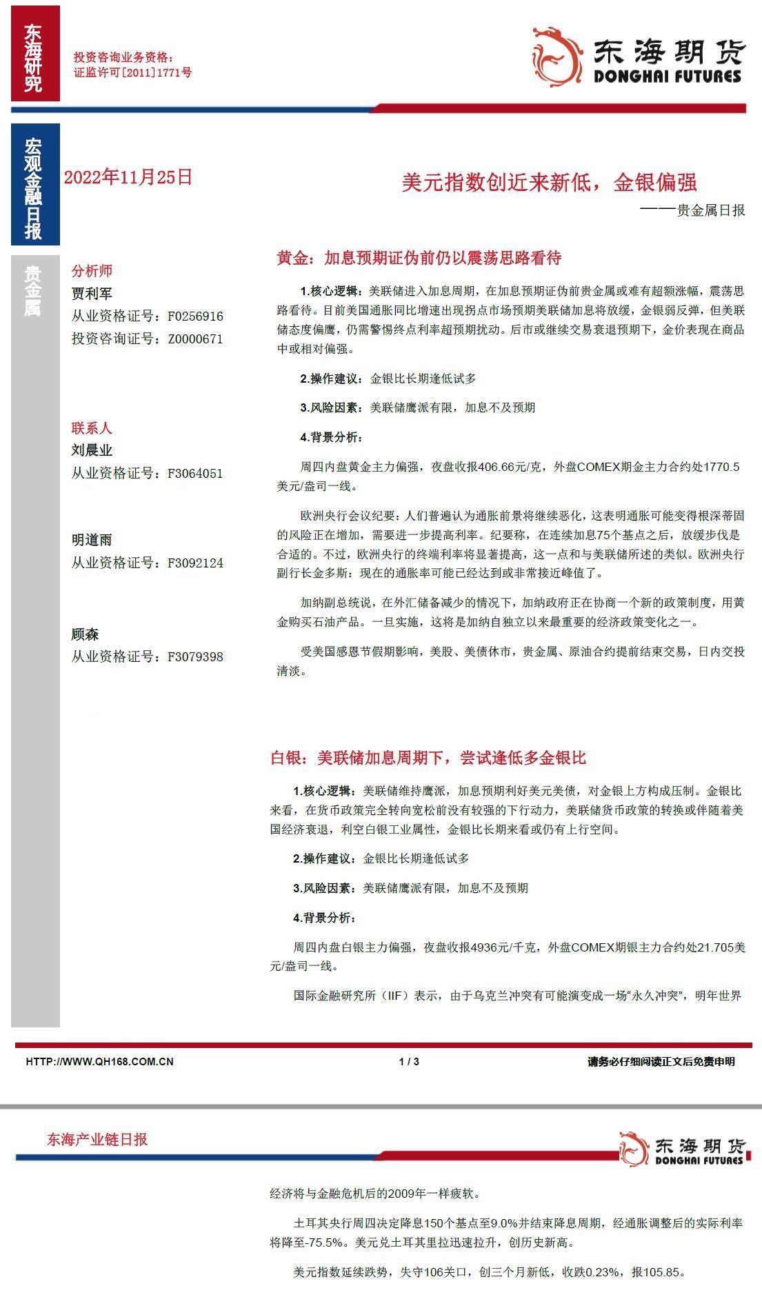白银核心逻辑:美联储维持鹰派,加息预期利好美元美债,对金银上方构成压制。金银比来看,在货币政策完全转向宽松前没有较强的下行动力,美联储货币政策的转换或伴随着美国经济衰退,利空白银工业属性,金银比长期来看或仍有上行空间。