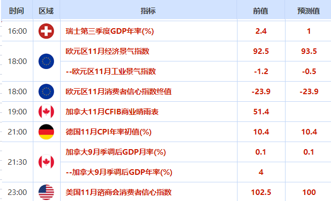 周二重要经济数据和事件