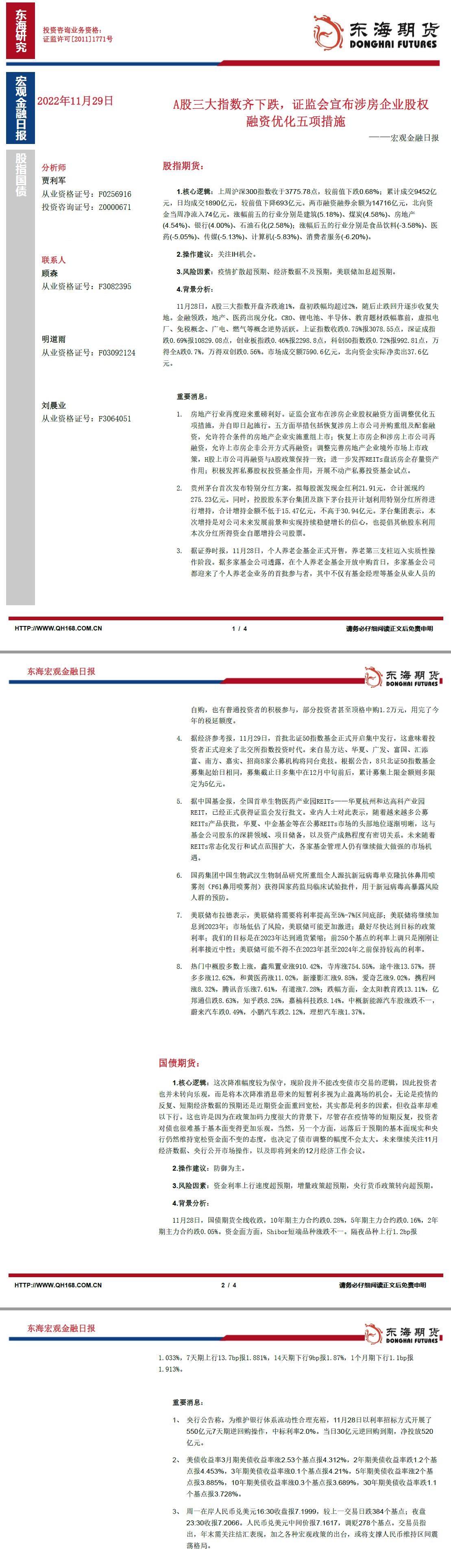 国债期货核心逻辑:这次降准幅度较为保守,现阶段并不能改变债市交易的逻辑,因此投资者也并未转向乐观,而是将本次降准消息带来的短暂利多视为止盈离场的机会。无论是疫情的反复、短期经济数据的预期还是近期资金面重回宽松,其实都是利多的因素,但收益率却难以下行。这也许是因为在政策加码力度很大的背景下,尽管存在疫情等的短期反复,投资者对债也很难基于基本面变得更加乐观。当然,另一个方面,远落后于预期的基本面现实和央行仍然维持宽松资金面不变的态度,也决定了债市调整的幅度不会太大。未来继续关注11月经济数据、央行公开市场操作,以及即将到来的12月经济工作会议。