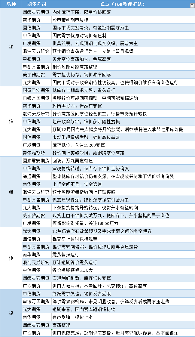 标题:期货公司观点汇总一张图:11月30日有色系(铜、锌、铝、镍、锡等)