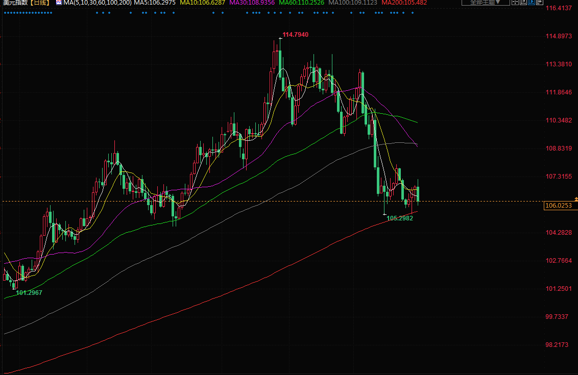美元指数从9月28日触及的114.78的20年高点回落,投资者期待美联储在明年初达到利率峰值,因预计通胀压力会减弱,对经济下滑的担忧也在增加。