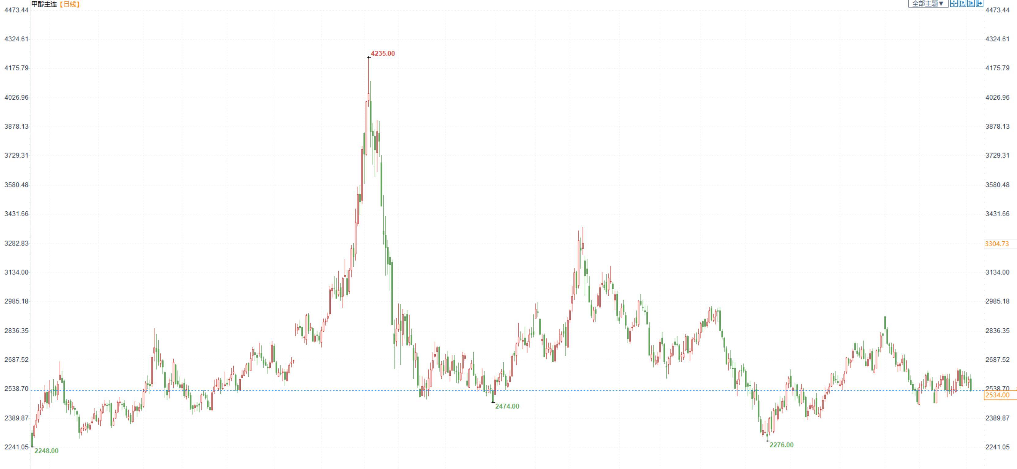 期货市场,甲醇2301合约跌超2%,收盘价2534。现货端,港口库存较低,目前现货强势于期货。