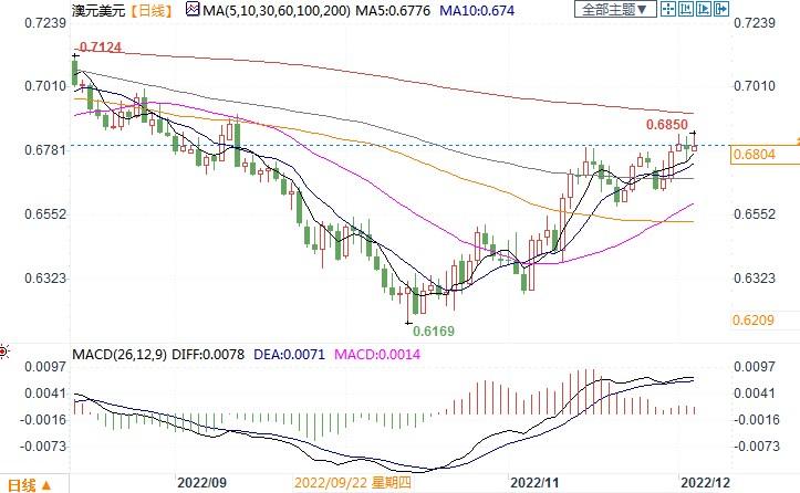 北京时间12月5日16:00 澳元兑美元 报 0.6804