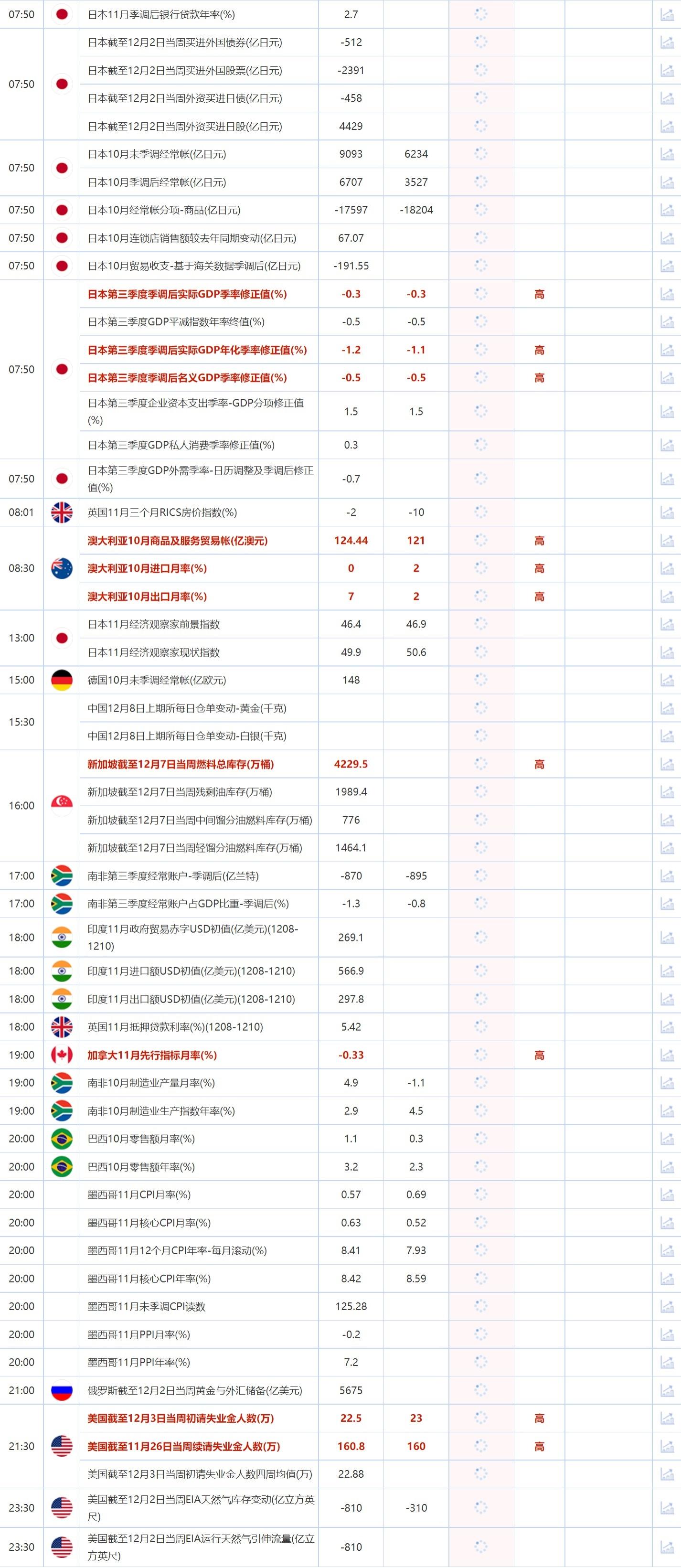 后续及时更新的财历数据请关注:【汇通网12月8日财经日历】