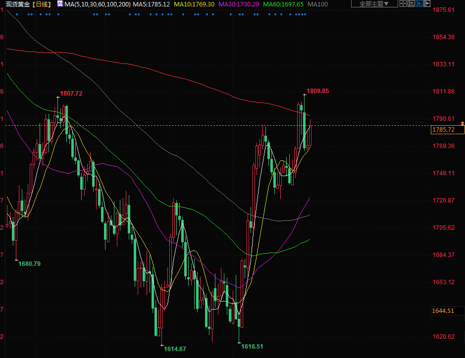 道明证券大宗商品市场策略主管Bart Melek表示,“我们看到国债收益率全线下跌,美元小幅走软,我们只是从低位反弹。”