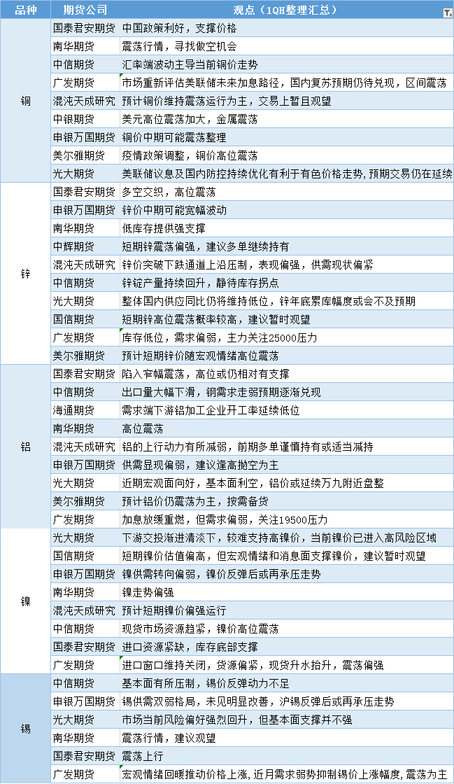 标题:期货公司观点汇总一张图:12月8日有色系(铜、锌、铝、镍、锡等)
