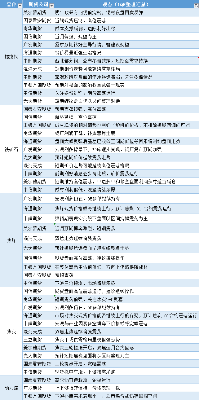 期货公司观点汇总一张图:12月8日黑色系(螺纹钢、焦煤、焦炭、铁矿石、动力煤等) Dec 08,2022 汇通财经APP讯——期货公司观点汇总一张图:12月8日黑色系(螺纹钢、焦煤、焦炭、铁矿石、动力煤等)