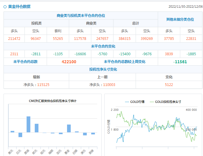贵金属方面,11月29日当周,投机者所持COMEX黄金净多头头寸减少3910手合约,至28009手合约。