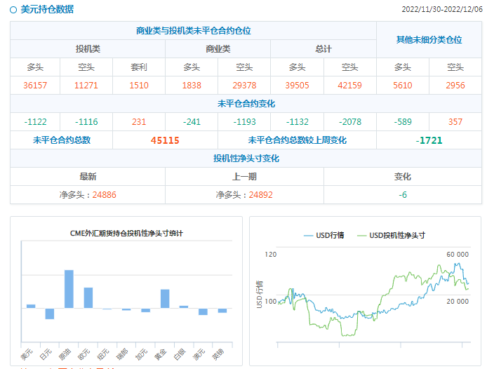 截至12月6日的一周,美元净空头头寸猛增至22.3亿美元,为2021年7月以来最多,上周为9.38亿美元。