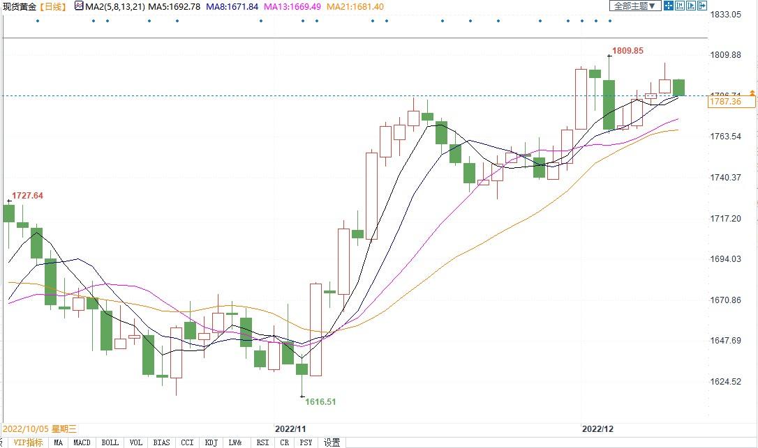 OANDA高级市场分析师莫亚称:“预计11月CPI将朝着正确的方向发展,但它不会像许多人预期的那样迅速下降。我部分看空本周黄金的走势。美联储加息后,金价可能会出现震荡,但最终会走高。下周黄金市场可能下滑,但这将是短暂的。”